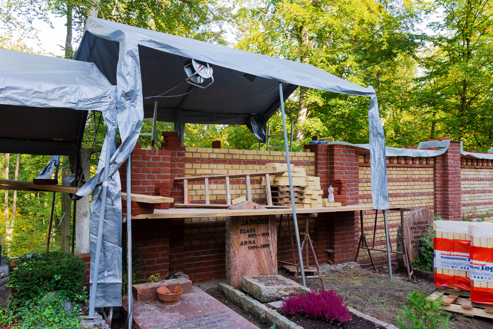 Die Reparatur der Ostmauer schreitet schnell voran und die Herbsteinfärbung hat der Jahreszeit entsprechend eingesetzt.