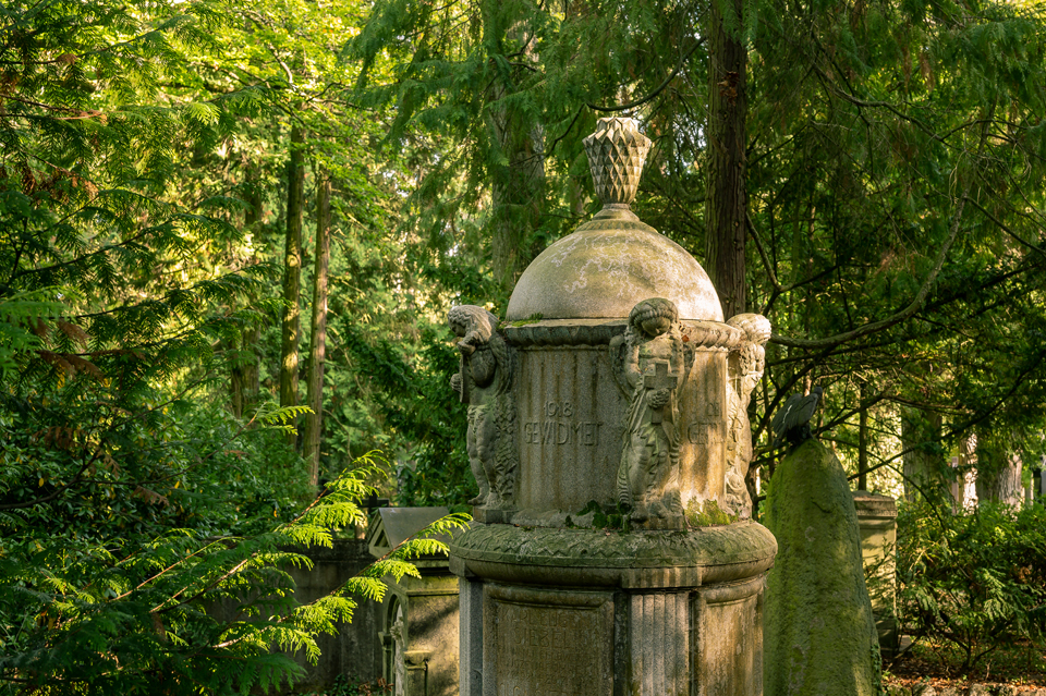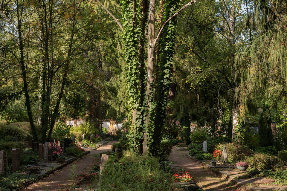 Im Frühherbst 2020 zeigt sich der Nordfriedhof, trotz der anhaltenden Trockenheit noch sehr grün. Man könnte fasst meinen es wäre noch Sommer, wenn das Licht nicht schon längere Schatten werfen würde. Wer möchte kann jetzt einen der warmen Spätsommertage zu einem Spaziergang über den Nordfriedhof nutzen.
